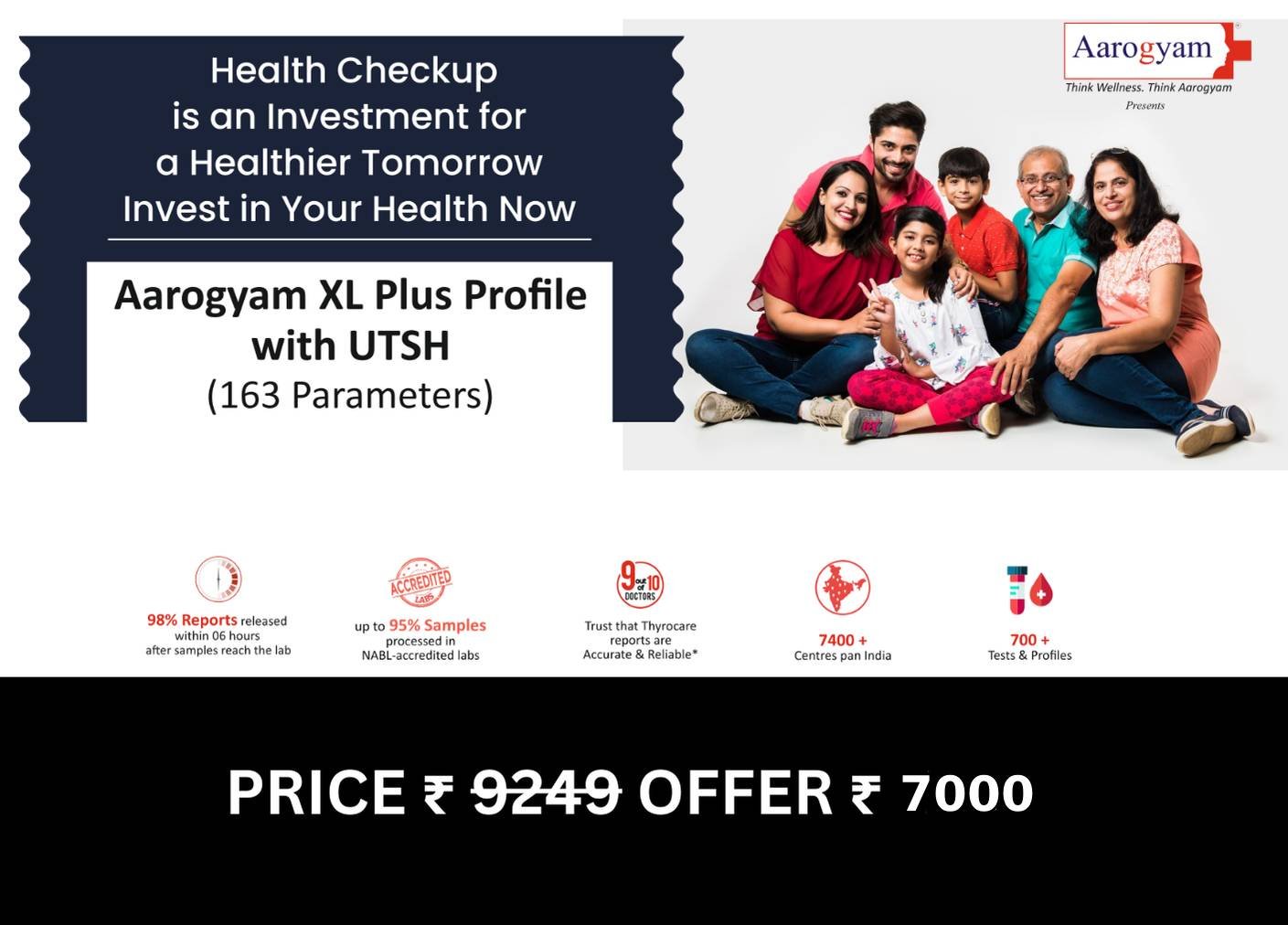 Aarogyam XL Plus Profile (Includes ADVANCED CARDIAC RISK MARKERS, ARTHIRITIS PROFILE, PANCREAS,STEROID PROFILE MINERALS, INSULIN, 22 TOXIC AND NUTRIENTS, COMPLETE VITAMINS PROFILE)